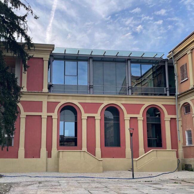The historic façades, dating back to the early twentieth century, have been preserved and enhanced. Arches, mouldings, cornices and pilasters now once again engage in dialogue with the neighboring Palazzina Magnani, restoring a valuable sense of architectural and urban continuity. Within this protected historical shell, the interior has been completely redesigned to accommodate flexible workspaces, offices and a conference hall, blending historic identity with contemporary functional requirements.