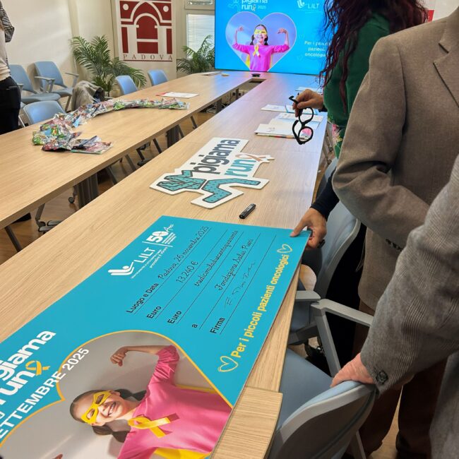 I frutti di quella partecipazione si sono concretizzati ieri, 26 novembre, con la consegna della donazione da parte di LILT Padova alla Fondazione Salus Pueri: un assegno da 13.240 euro destinato all’umanizzazione degli spazi del nuovo Ospedale Pediatrico. Il resto della donazione sarà destinato al sostegno delle famiglie dei piccoli pazienti oncologici, aiutandole ad affrontare le difficoltà quotidiane legate alla malattia.